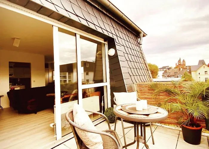 Als u een vroege vlucht hebt vanaf Limburg an der Lahn, ligt 1-slaapkamer "Lodge Domblick" op 65 km van Frankfurt. Gasten die met de auto reizen kunnen gebruik maken van gratis priveparkeerplaatsen ter plekke.